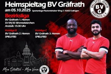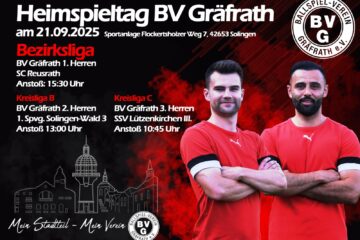 Mehr lesen...Am 30.08.2025 veranstaltet der BV Gräfrath e.V. eine große Saison Eröffnung 2025 / 2026. Hiermit laden wir alle zur vereinsinternen […]