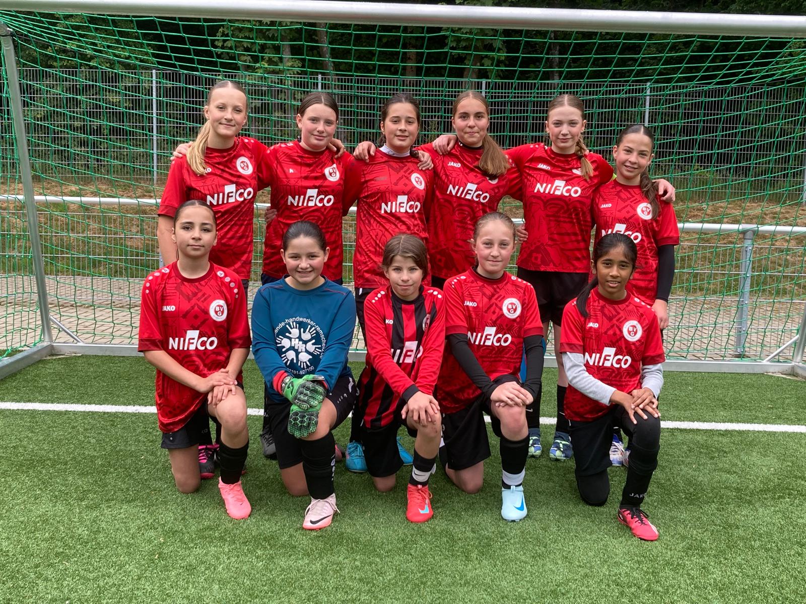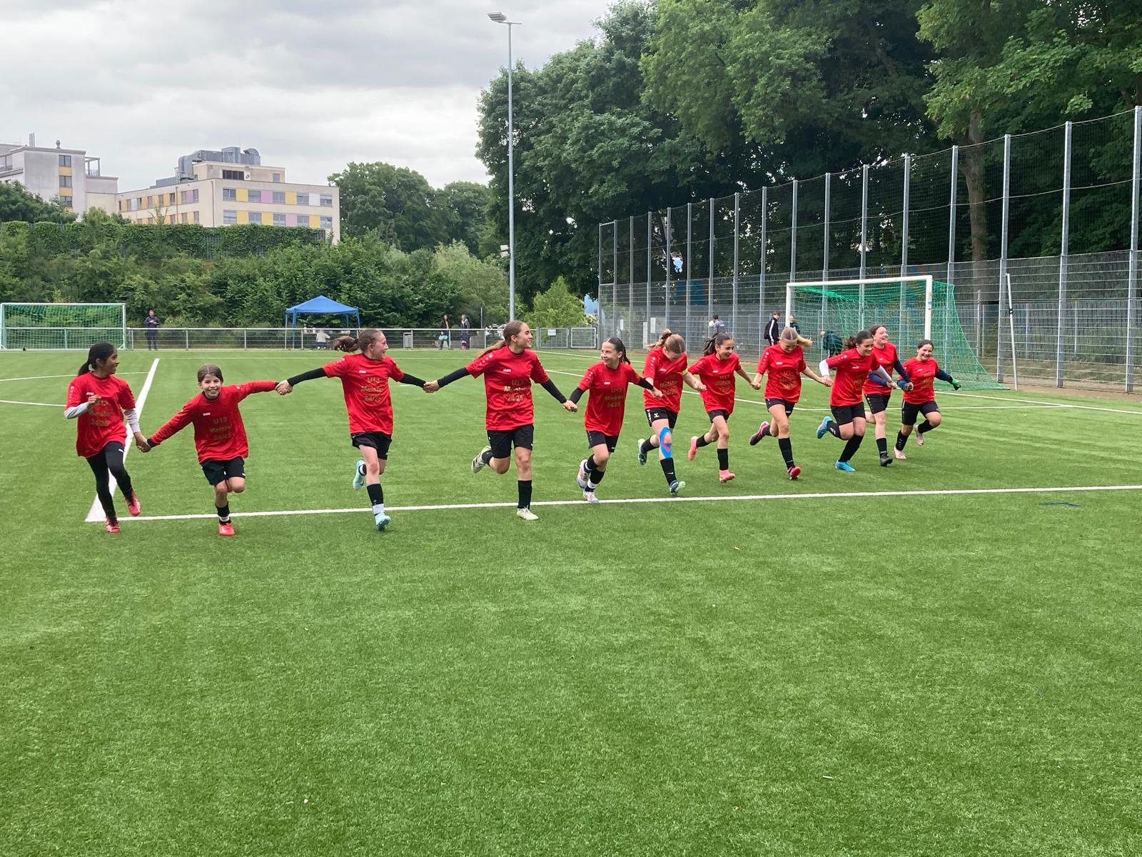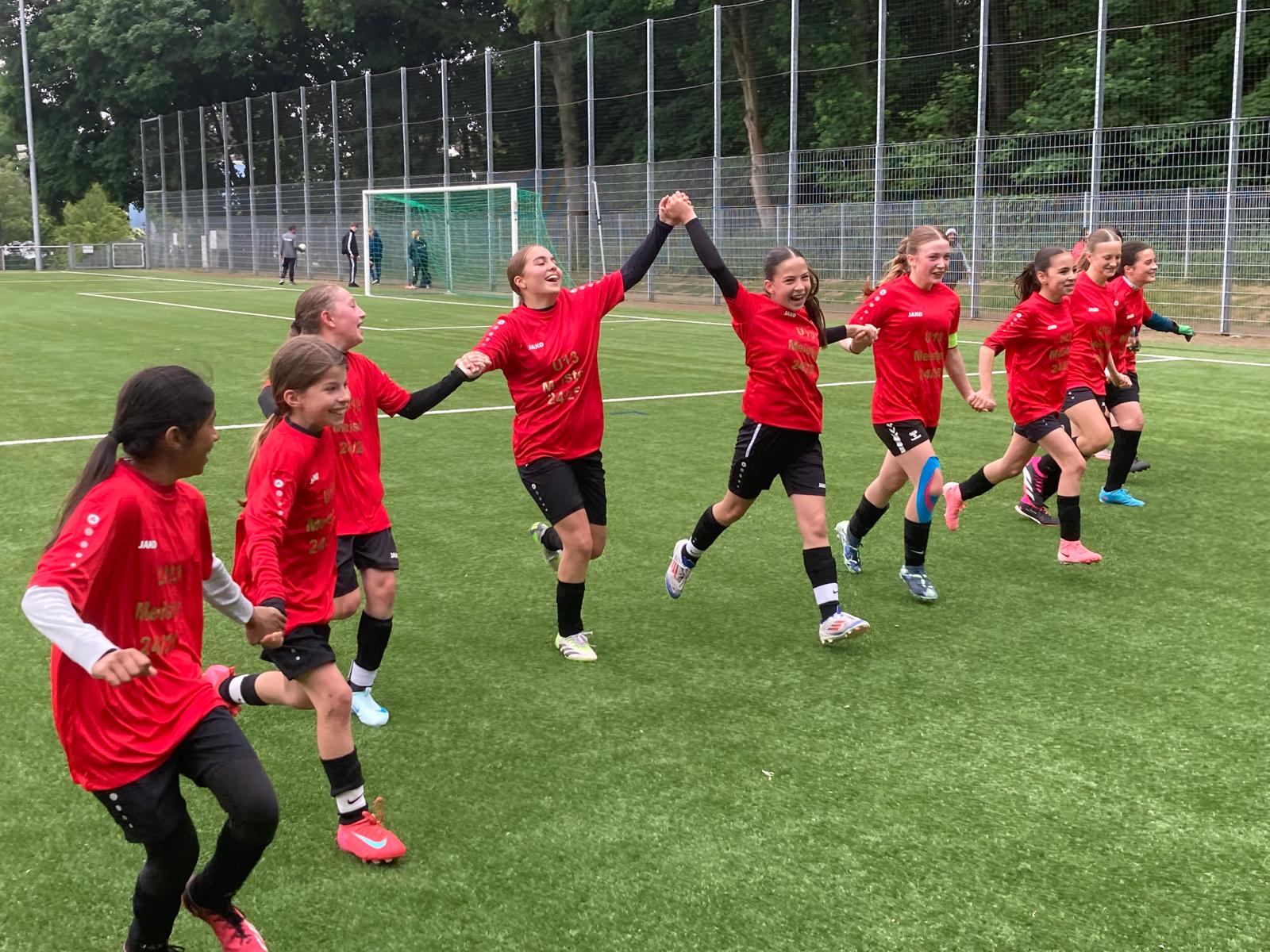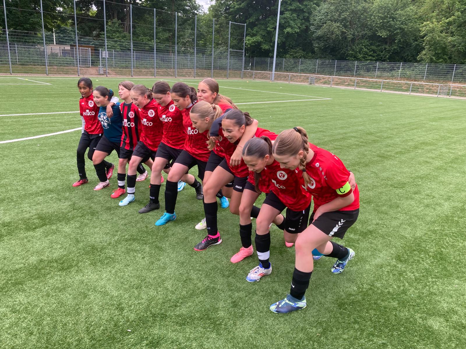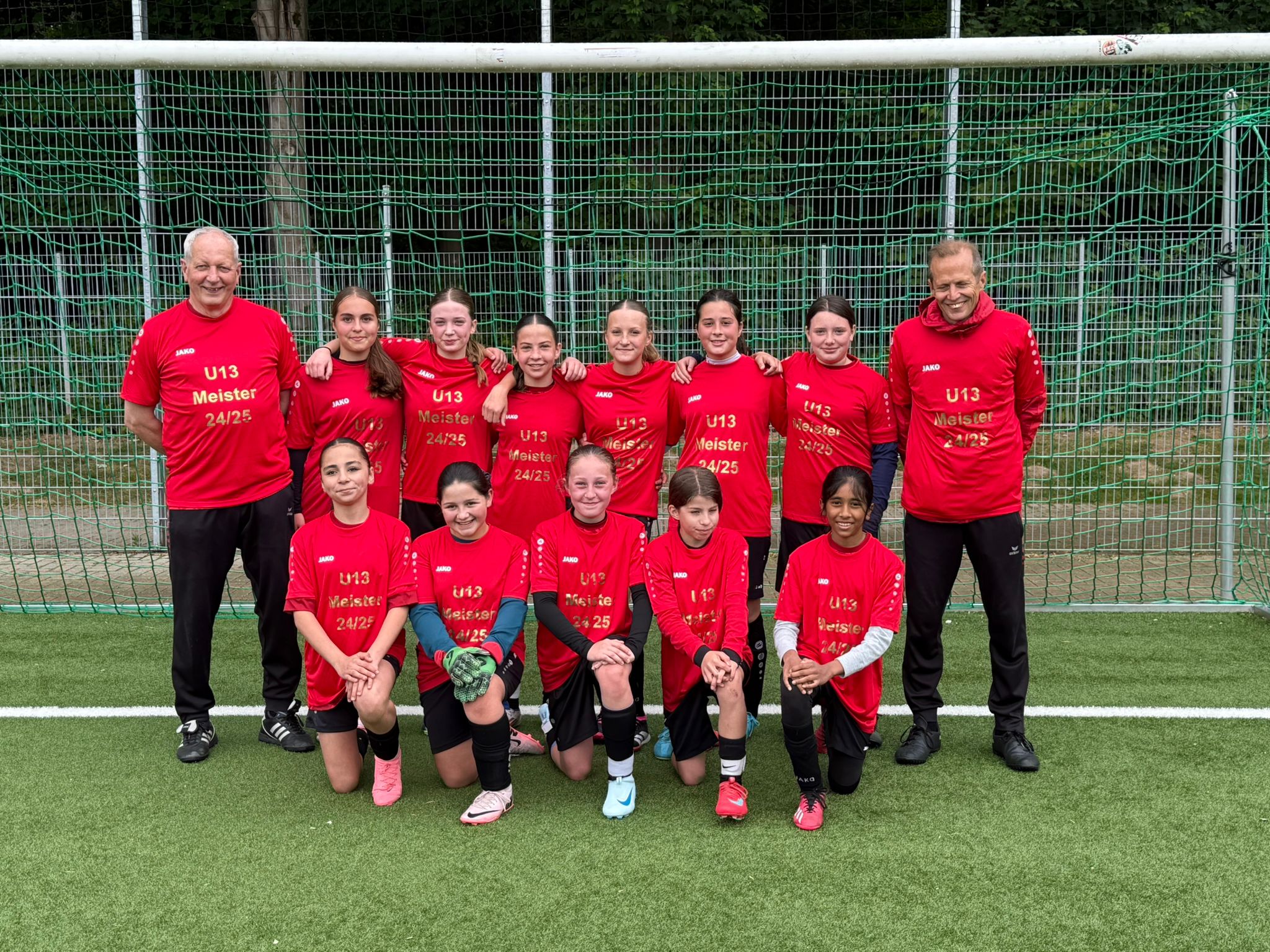 Im letzten Meisterschaftsspiel der MU 13 des BV Gräfrath gegen den TSV Solingen, einem klassischen Lokalderby, krönten die Gräfrather Mädchen ihre überaus erfolgreiche Saison 2024/25! Nachdem der Meistertitel bereits im vorletzten Spiel mit einem 3:0 Auswärtssieg beim SV Jägerhaus-Linde erreicht worden war, setzten die Mädchen noch einen drauf: Mit dem 2:1 Auswärtssieg in praktisch letzter Minute holten sie diesen Meistertitel in der Gruppe 3 (Kreis Remscheid) sogar am Ende ungeschlagen (nur ein Unentschieden)!
