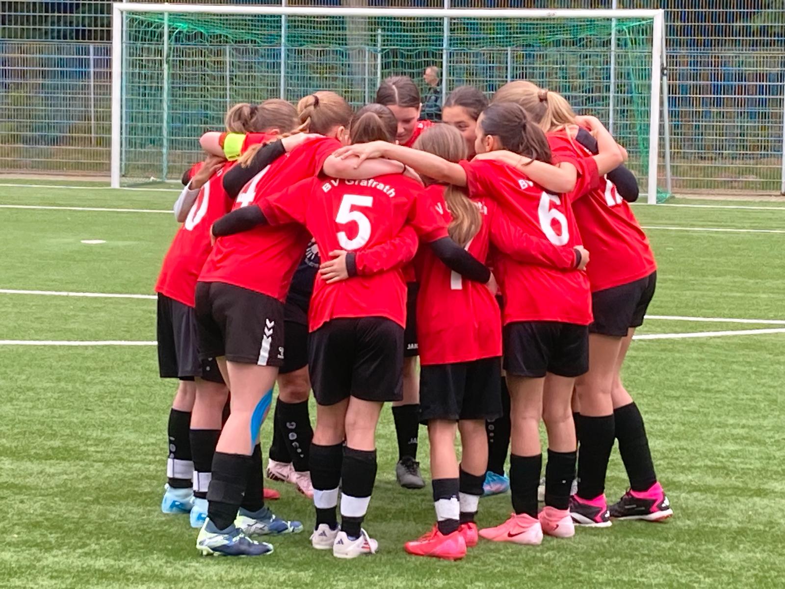 In der 2. Halbzeit gab es ein weiter spannendes und kampfbetontes Spiel, bei dem die Gräfratherinnen zwar etwas mehr vom Spiel hatten, die TSV-Mädchen aber immer wieder durch schnelle Konter brandgefährlich waren. Etwas Glück bei einem gegnerischen Pfostenschuss und einige tolle Paraden von BVG-Torhüterin Marina verhinderten jedoch, dass der BVG erneut in Rückstand geriet. Und dann, als alle schon mit einem Unentschieden gerechnet hatten, doch noch der 2:1 Siegtreffer in praktisch letzter Minute! Nach einem harten Schuss von Alica, den die gegnerische Torhüterin nur nach vorne abwehren konnte, konnte Marie flach ins linke Eck „abstauben“! Kurz darauf der Abpfiff!