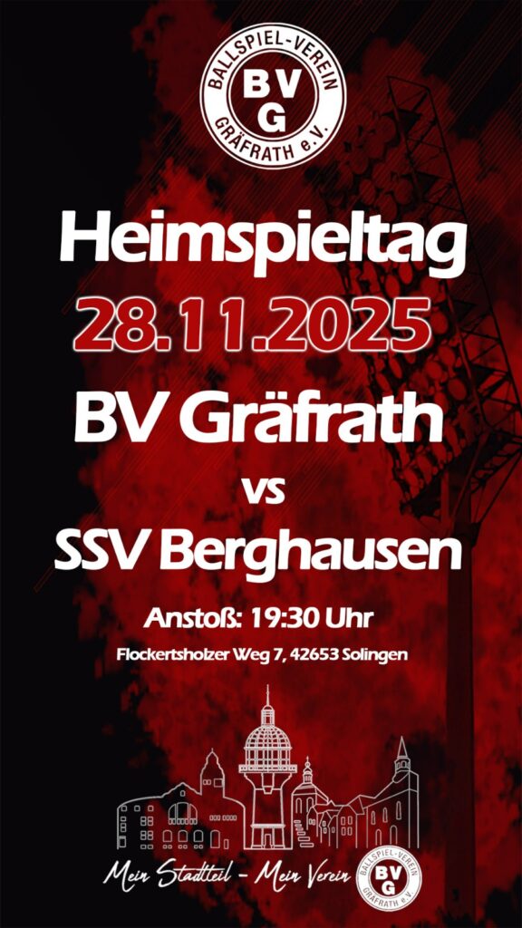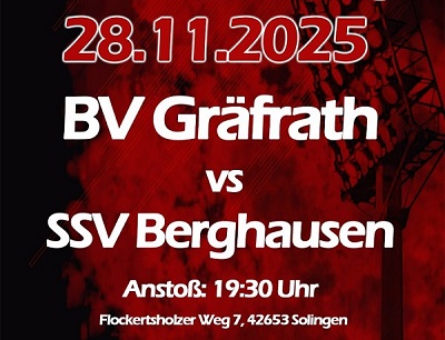 Die ERSTE spielt dieses Mal ausnahmsweise am kommenden Freitag den 28.11.2025 um 19.30 Uhr statt am Sonntag am heimischen Flockertsholz gegen den SSV Berghausen. Ein Sieg gegen den direkten Konkurrenten im Abstiegskampf wäre unheimlich wichtig, um etwas Luft im Abstiegskampf zu gewinnen. Wir hoffen natürlich auf viele Besucher auf der Sportanlage, die den BVG hoffentlich lautstark unterstützen.