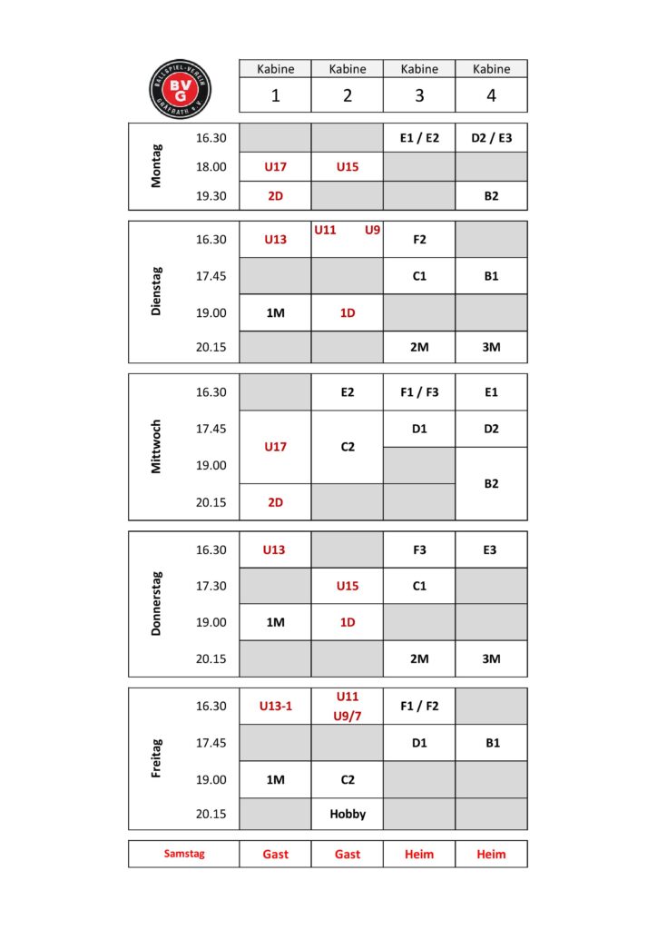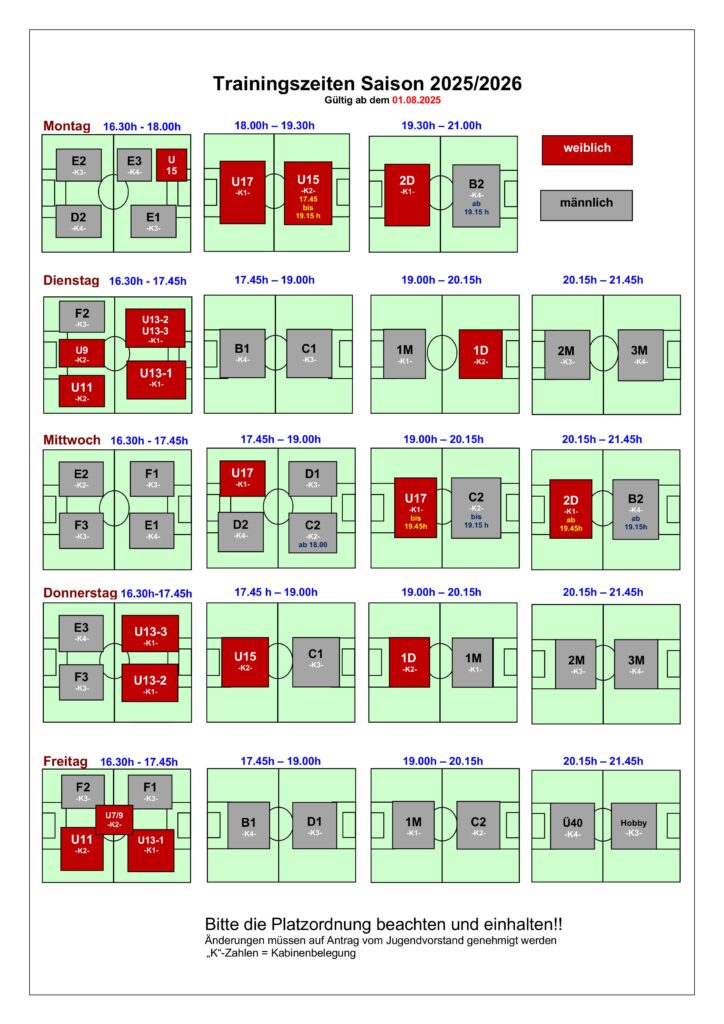 Trainingszeiten + Kabinenbelegung Trainingszeiten Saison 2024/2025 Kabinenbelegung 2024/2025 Hallen-Belegungszeiten 2024/2025